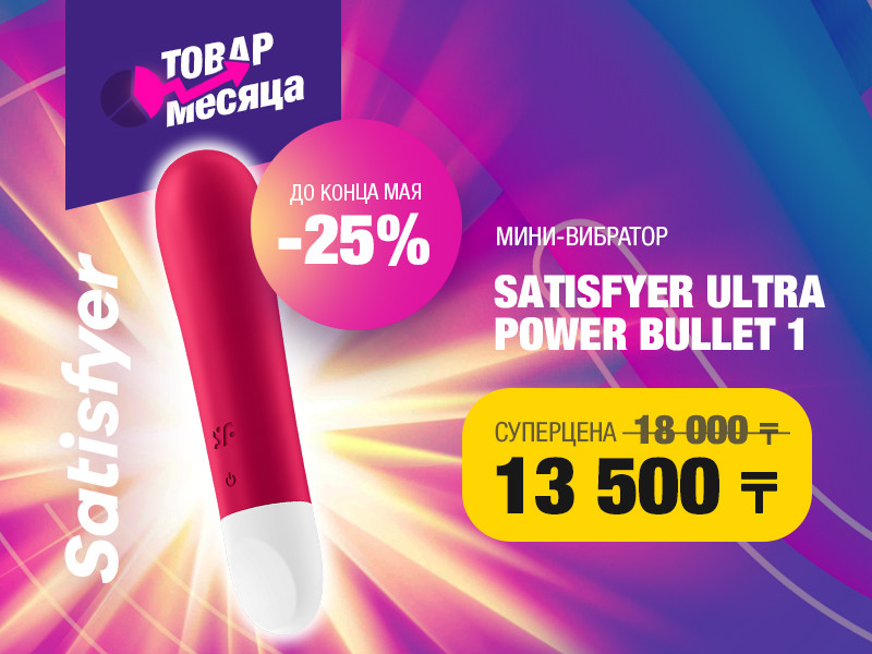 Акция "Товар месяца"! Скидка в мае 25% будет активна на девайс от популярного немецкого производителя секс игрушек Satisfyer - мини-вибратор Ultra Power Bullet 1! Цена со скидкой будет составлять всего - 13 500 тг.