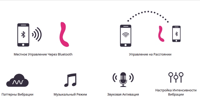 Помимо управления кнопками на корпусе, вы можете регулировать работу стимулятора через приложение на смартфоне. Если обычное управление подразумевает доступ к 3 режимам интенсивности и 10 вариациям вибрации, то со смартфоном вы сможете: